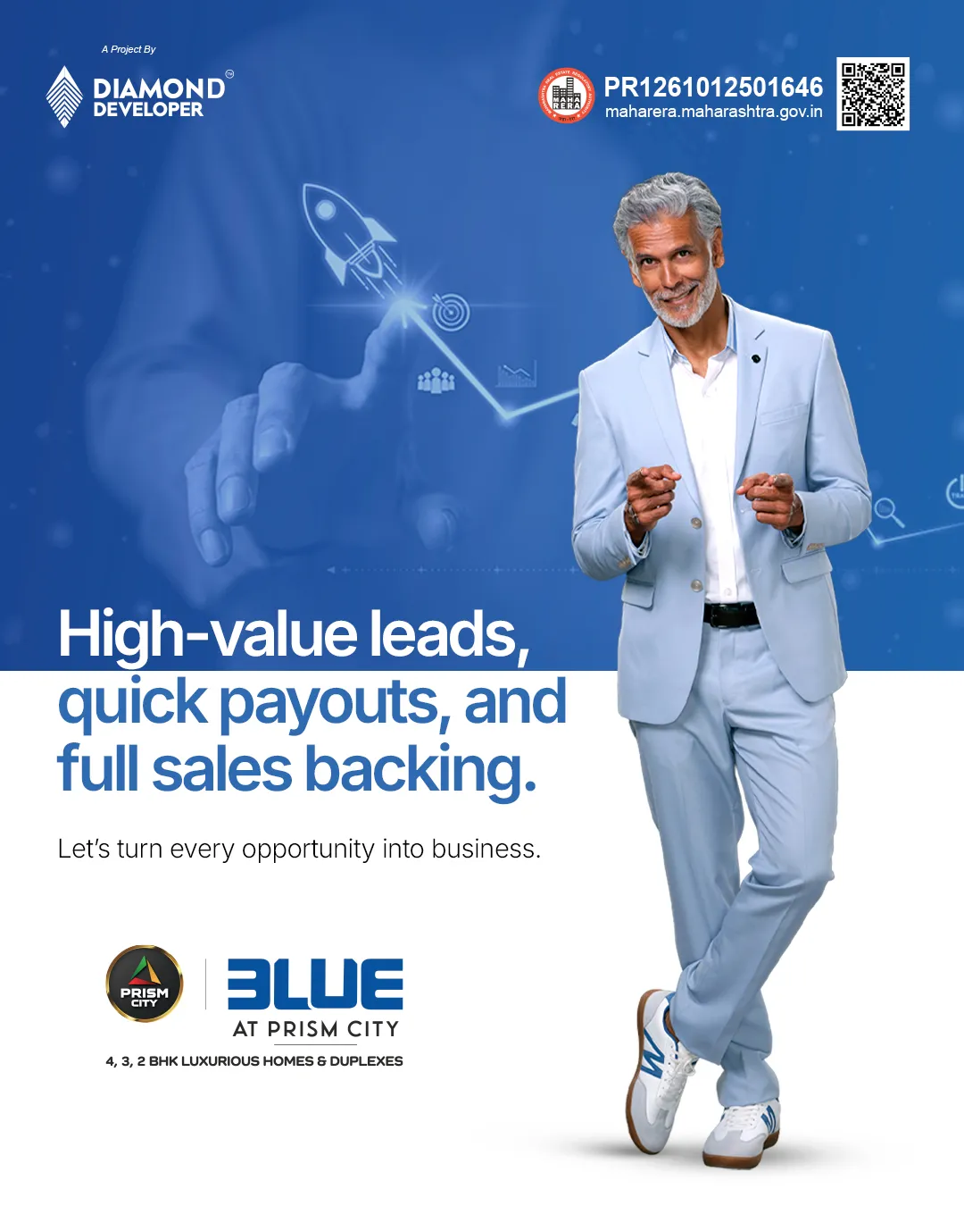 A growing real estate brand focused on building more than just homes. With Prism City Blue, playgrounds with homes spread across 5.5 acres, Diamond Developer introduced a thoughtfully planned ecosystem where architecture, nature, wellness, and recreation come together with 70% open space. Offering 2, 3, and 4 BHK homes and duplexes with features like aangan spaces and walk-in wardrobes, the project had strong USPs but limited structured digital storytelling.